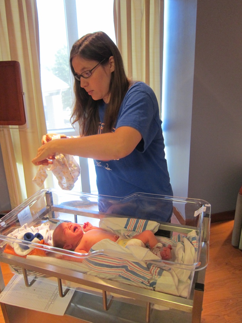 Hospital gown off and ready for his going home outfit- Florida Gator onesie, orange shorts, matching socks and hat
